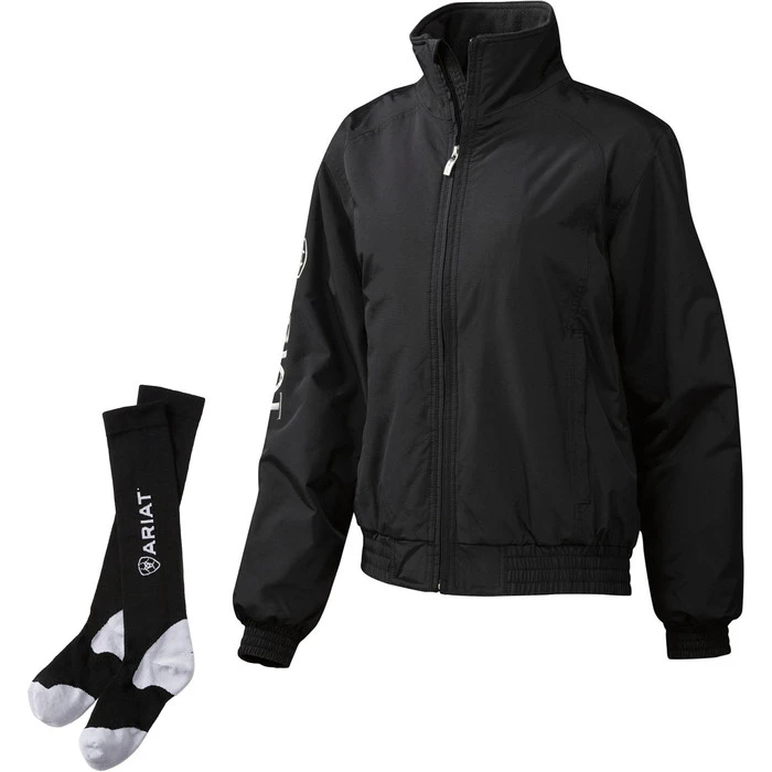 The Ariat Waterproof Stable Jacket is a classic! Waterproof and wind resistant blouson style jacket with a lightweight polyfill quilted lining.Featuring a mock collar fitted hem and logo embroidery as well as zippered entry for team embroidery.