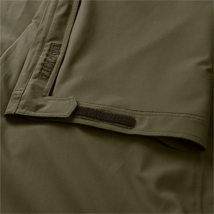 Like the rest of the Orton Packable range, the Orton Packable Trousers are made from a material that is not only very light but also stretchable and soft. The trousers incorporate our own windproof and waterproof HWS (Härkila Weather System) membrane that has been designed specially for hunting and is low-noise, supple and stretchable. Because both the fabric and the membrane are supple and stretchable, you retain freedom of movement, even when wearing the trousers over another pair. The trousers have full-length zips on both legs, so they are very easy to put on and take off without having to remove your boots. The zips are covered with a storm flap with a Velcro closure. The size of the boot opening can also be adjusted at the ankles. Instead of pockets, the trousers have openings with press-studs on each side for access to the pockets of the trousers being worn underneath. The trousers have an integral zip pocket at the waist, for quickly packing them away in.