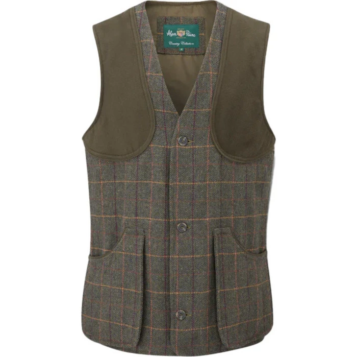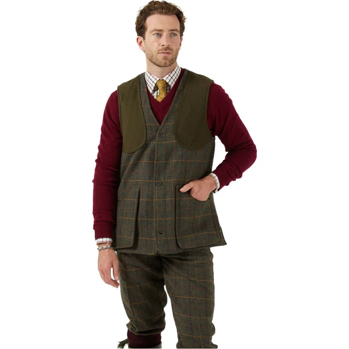 2023 Alan Paine Mens Rutland Tweed Shooting Waistcoat Gilet RUTGSHW – Fern Colour Fern