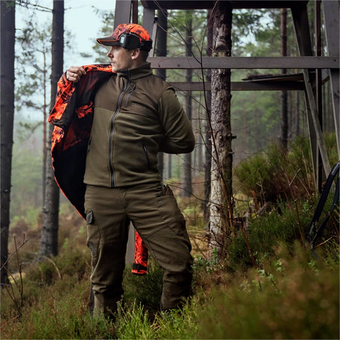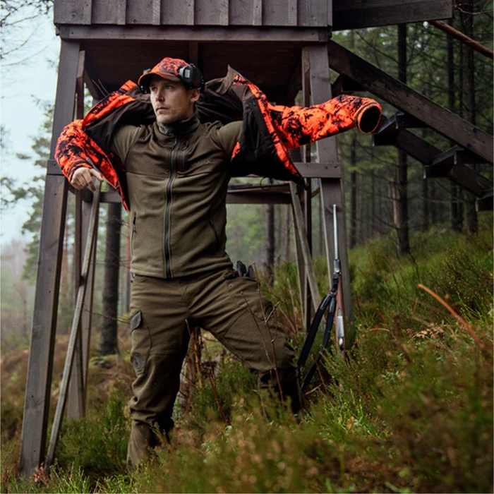The Steinn fleece is made from a polyester brushed fleece. It is fitted with zipped side pockets as well as a zipped chest pocket on the left-hand side of the chest. The brushed fleece material gives the Steinn Fleece a classic look and when it is put together with the micro-fleece upper section it creates a very versatile fleece that suits almost all the hunter’s needs. Whether you are stalking, tending to your feeders, or just out for a walk around the premises the Steinn fleece will do the job perfectly. The silent capabilities of the fleece fabric also makes it ideal for stalking in the warmer parts of the year or as mid-layer towards the end of the season.